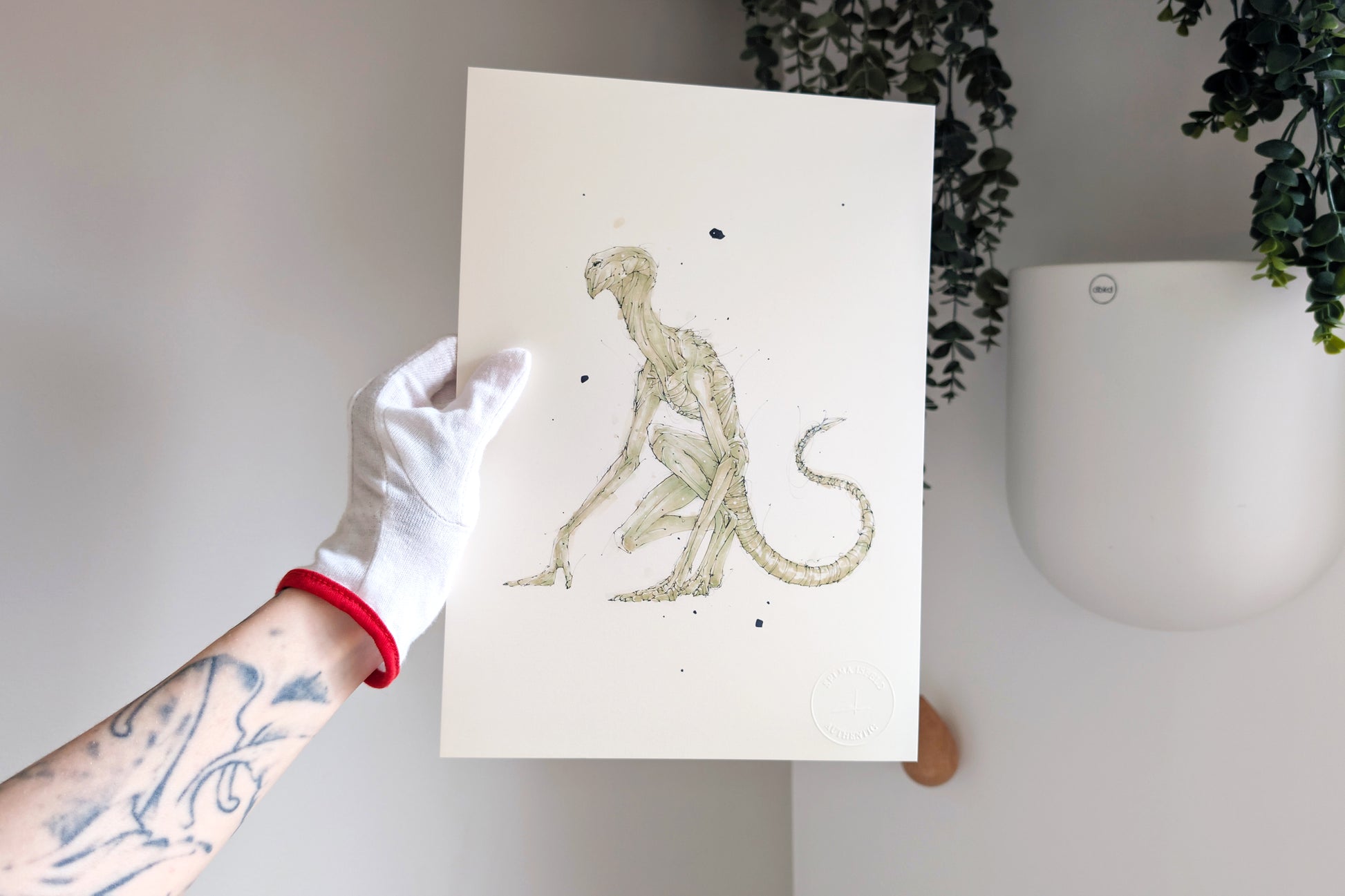 Alle Giclée-trykk er håndsignert på baksiden og preget med et autentisitetssegl som bekrefter verkets originalitet.